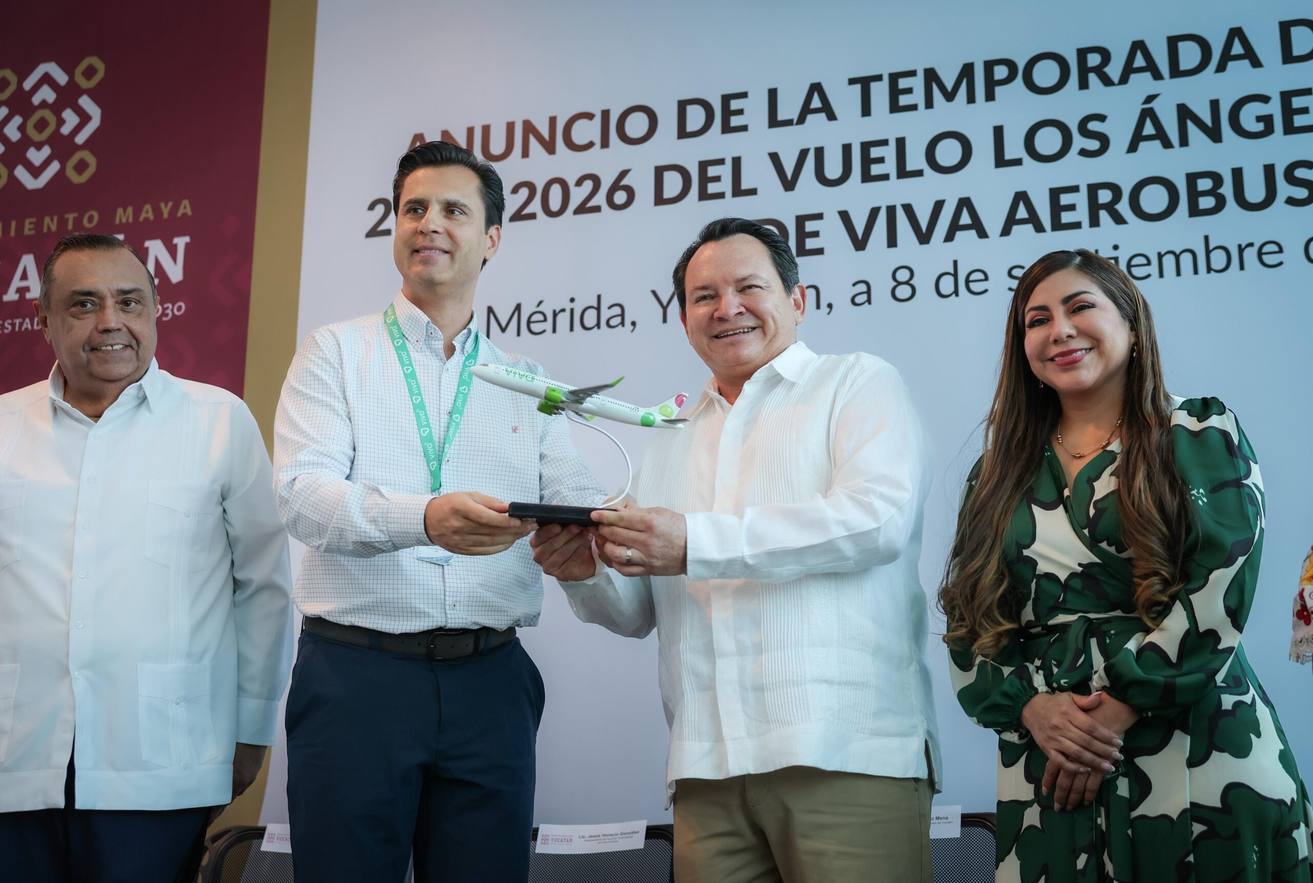 Yucatán celebra al pasajero 10 millones de Viva Aerobús y anuncia vuelo directo a Los Ángeles