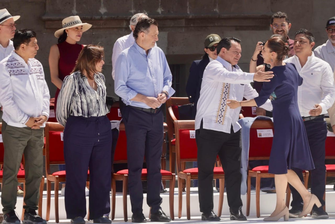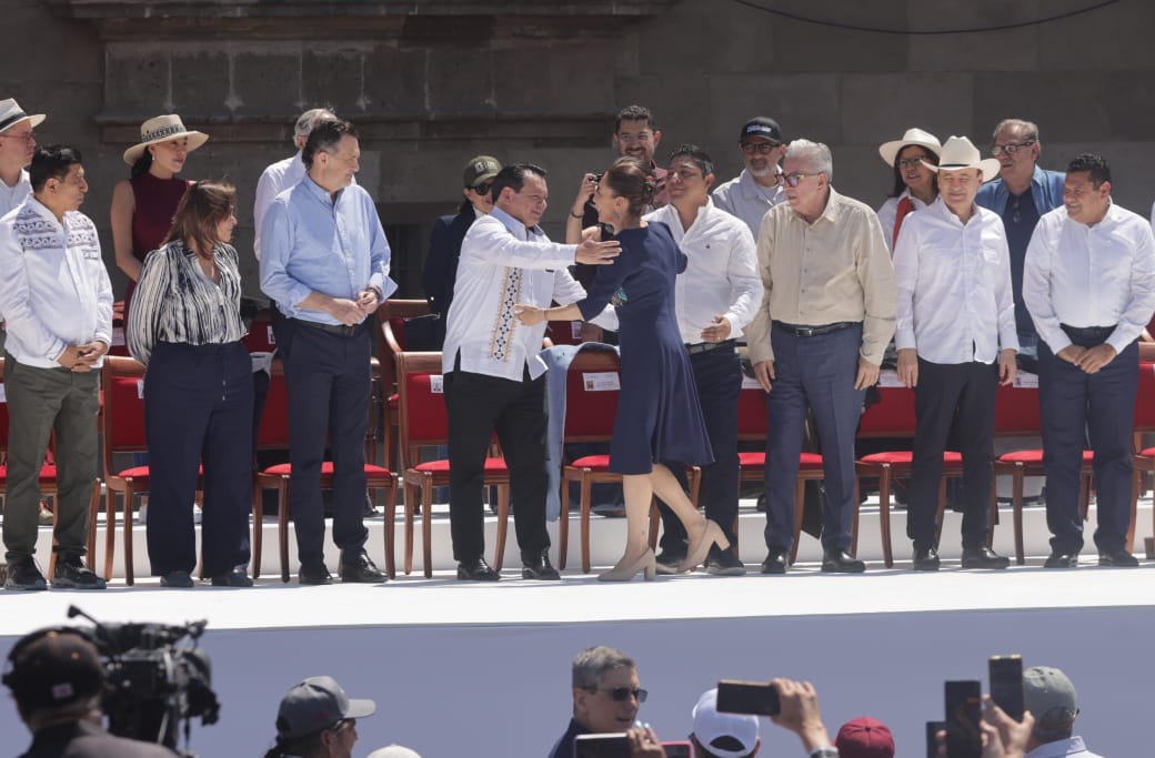 Ciudad de México, 9 de marzo de 2025.- En una Plaza de la Constitución completamente abarrotada, el gobernador de Yucatán, Joaquín Díaz Mena, expresó su respaldo total a la presidenta de México, Claudia Sheinbaum Pardo, en su defensa de la soberanía nacional ante las recientes presiones del exterior, particularmente por parte del presidente estadounidense Donald Trump.