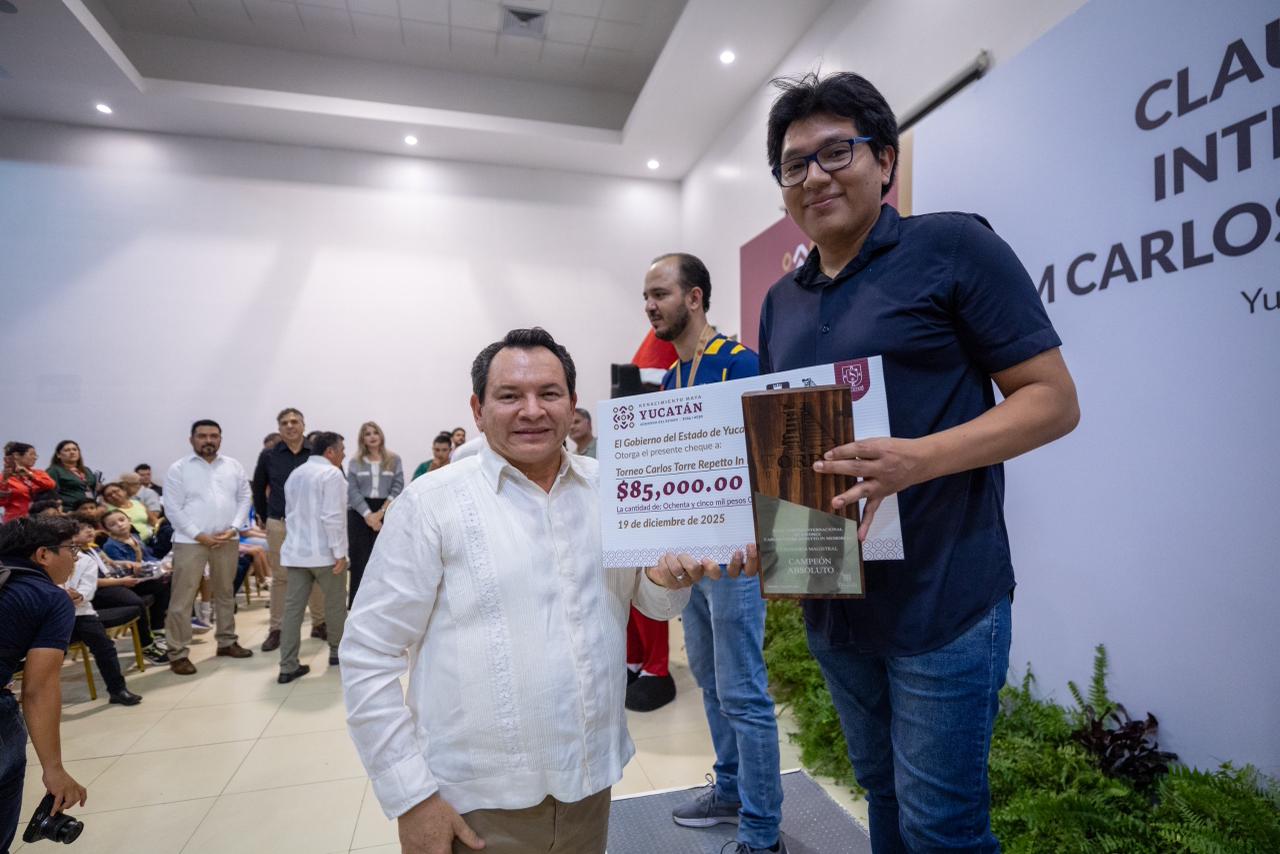 Yucatán reafirmó su liderazgo en el ajedrez de alto nivel con la clausura del XXXV Torneo Internacional de Ajedrez Gran Maestro Carlos Torre Repetto In Memoriam, evento que cerró con el compromiso de seguir impulsando el deporte como vía de desarrollo social y cultura de paz.
