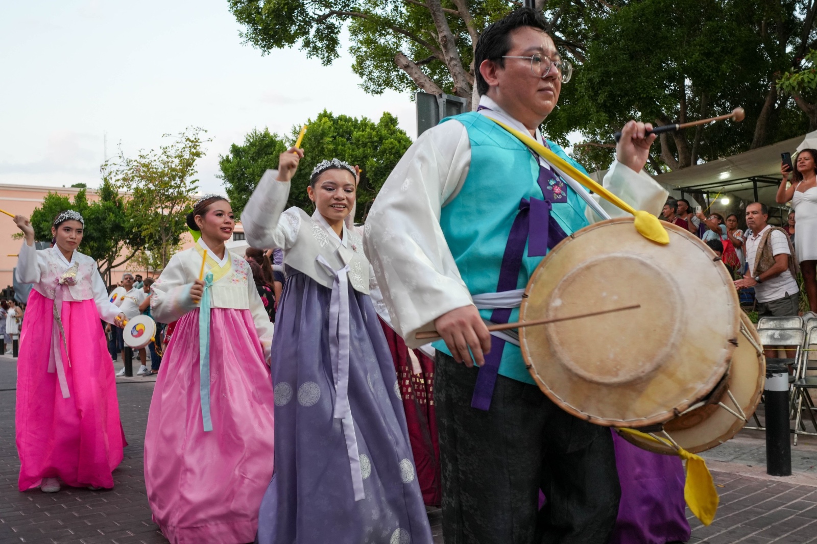 La jornada inició con una ofrenda floral en la esquina del Chemulpo, barrio de Santiago, en el sitio donde se encuentra la placa conmemorativa del arribo del barco coreano. Posteriormente, los asistentes marcharon hacia los bajos del Palacio Municipal, donde disfrutaron de presentaciones artísticas que incluyeron danzas tradicionales coreanas, exhibiciones de Taekwondo, coreografías de K-Pop, jaranas y la participación del grupo dancístico Ka’ambal, integrado por yucatecos y descendientes coreanos.