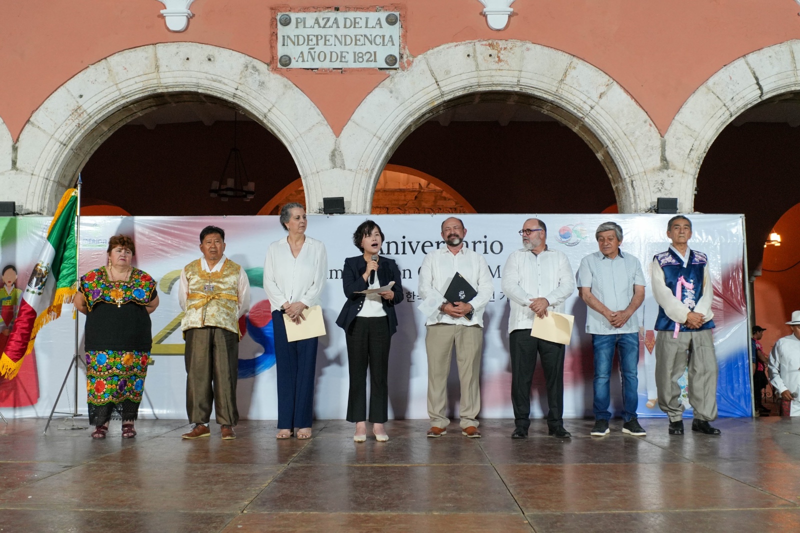 Durante el acto protocolario, se entonaron los himnos nacionales de México y Corea. Encabezaron la ceremonia la ministra consejera Sanhui Lee de la Embajada de Corea; Darío Flota Ocampo, titular de SEFOTUR; Karla Berrón Cámara, directora de Identidad y Cultura del Ayuntamiento de Mérida; así como representantes de Koryuc A.C. y el cónsul honorario de Corea en Yucatán, Ricardo Ponce Gutiérrez.